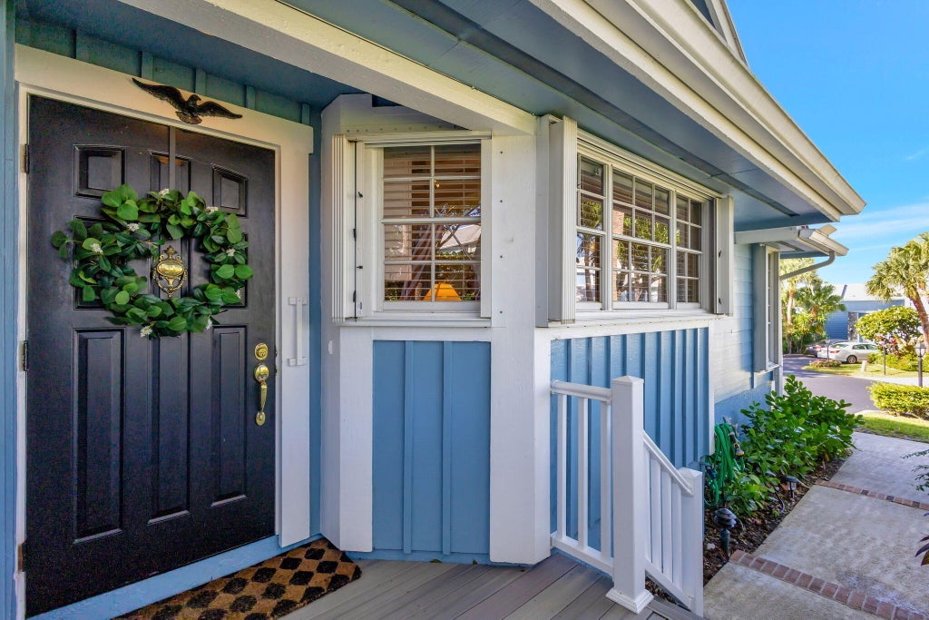 Experience the convenience of single story living in this charming 2 BR/2 BA end unit villa. Located just over a block from the ocean, shopping and dining, this home features an array of upgrades: maple hardwood floors- wood burning fireplace-plantation shutters throughout- crown molding- accordion hurricane shutters- custom built book case- granite counter tops in kitchen and baths- exterior landscape lighting- kitchen island with induction cooktop- front porch with TREX like material- 4 year old a/c and hot water heater- volume ceilings- 2 dedicated parking spaces. Community features pool, spa, tennis and pickleball with security gate access.