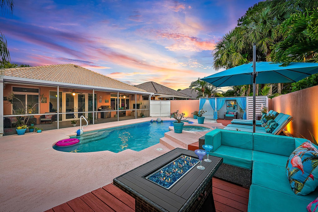 Welcome to your Florida dream home in the highly desirable, family-friendly community of The Hamptons at Maplewood in Jupiter. This beautifully renovated, DiVosta-built residence offers the perfect blend of sophistication, comfort, & the effortless charm of Florida living--completely move-in ready & designed to impress. Stylish, open concept living! Step into a bright & airy layout crafted for both everyday living & elegant entertainment. The heart of the home is the chef-inspired kitchen, featuring: an oversized quartz island, double wall oven with built-in microwave, sleek electric cooktop, & wine cooler. Whether you're hosting guests or preparing a quiet family dinner, this kitchen is sure to inspire!