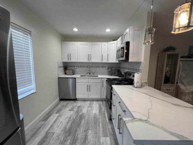 Absolutely stunning 2 bed/2 bath for rent for the 25/26 season. Come enjoy this turnkey unit with a lovely garden view and just steps away from the burgundy pool. This Condo has been updated with an open floor plan, 2 bathrooms and a screened in balcony. Washer/Dryer!! This active Kings Point 55 plus community provides amenities, including a 2 golf course, 2 restaurants, 3 clubhouses, indoor and outdoor pools, pickleball, tennis, courtesy shuttle buses, a theater, and many clubs. Conveniently located near place of worship, shopping centers, downtown Delray and beaches.