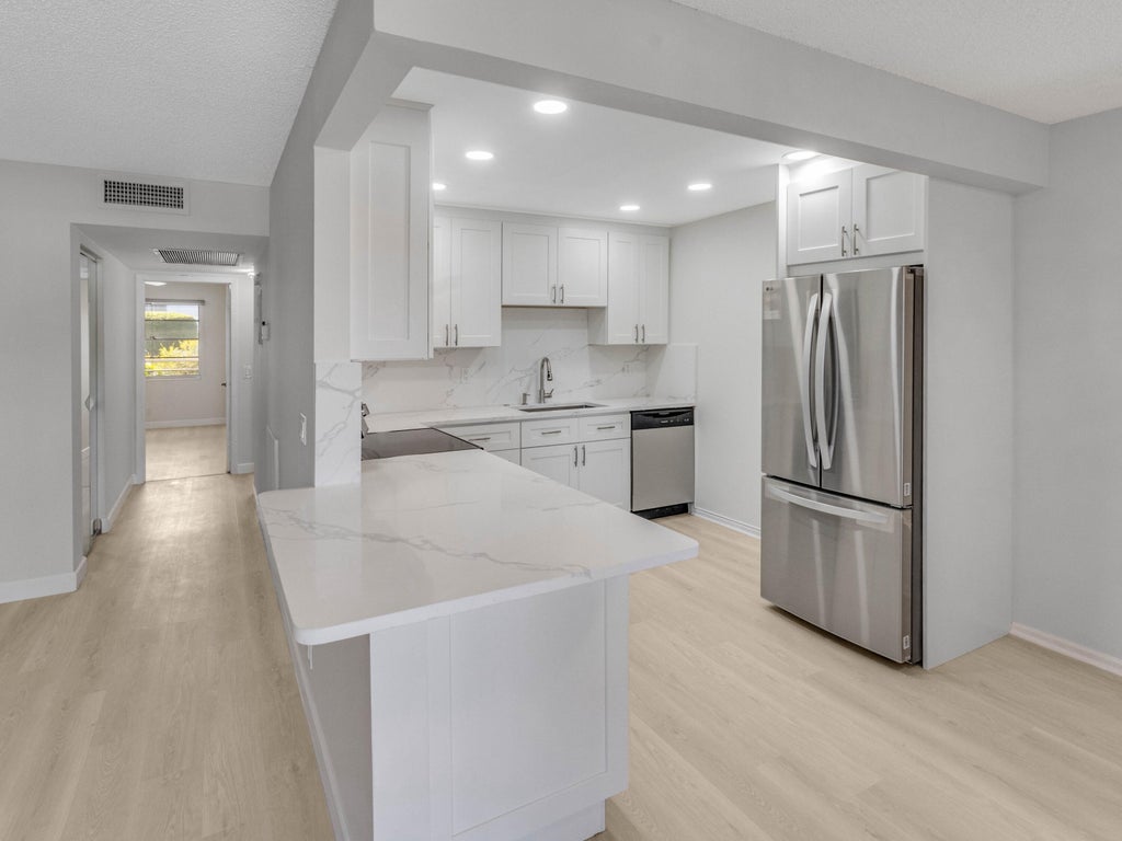 This charming 2-bedroom, 2-bathroom condominium offers the ideal combination of comfort and convenience. Enjoy serene lakefront views from your private patio--perfect for morning coffee or evening relaxation. The property has been fully updated with quartz countertops, and new kitchen cabinets, and it's never been lived in since the updates, allowing you to be the first to enjoy its pristine condition. The spacious layout also includes a large walk-in closet, providing plenty of storage space. Century Village is Florida's most esteemed active 55+ community, and this residence is located in the heart of it all. The community offers a wide array of amenities designed to enhance your lifestyle. Stay active with access to a community pool, tennis courts, pickleball courts.