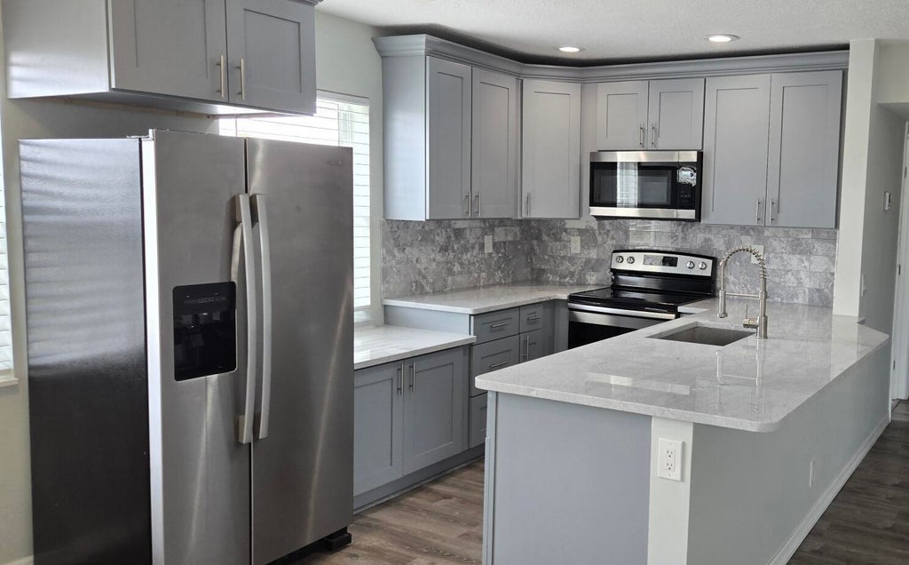 Golf & water views from this completely updated two bedroom, two full bath. Unit is on the 2nd floor. Brand new open and expended kitchen with white cabinets, granite counter tops, and stainless appliances. Modern updated baths, and new windows, blinds, baseboards, interior doors. Enclosed patio with gorgeous views of the golf course & lake. Unit has a full size washer & dryer.