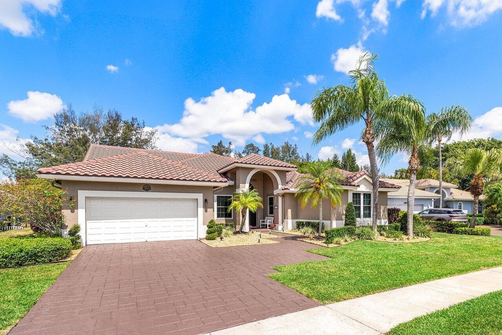 Meticulously maintained open concept 3/3.5 home with solar heated pool, impact windows and large fenced backyard. Roof 2019, new 2 zone A/C, beautifully remodeled kitchen, 3 remodeled bathrooms, large lanai, and abundant closet space. Aberdeen Golf & Country Club offers a Jim Fazio-designed golf course, tennis, pickleball, resort-style pools, a state-of-the-art fitness center, and multiple dining options. The vibrant social scene ensures there's always something exciting happening! Please note that MANDATORY MEMBERSHIP requires a minimum joining fee of $80,500 plus annual dues.