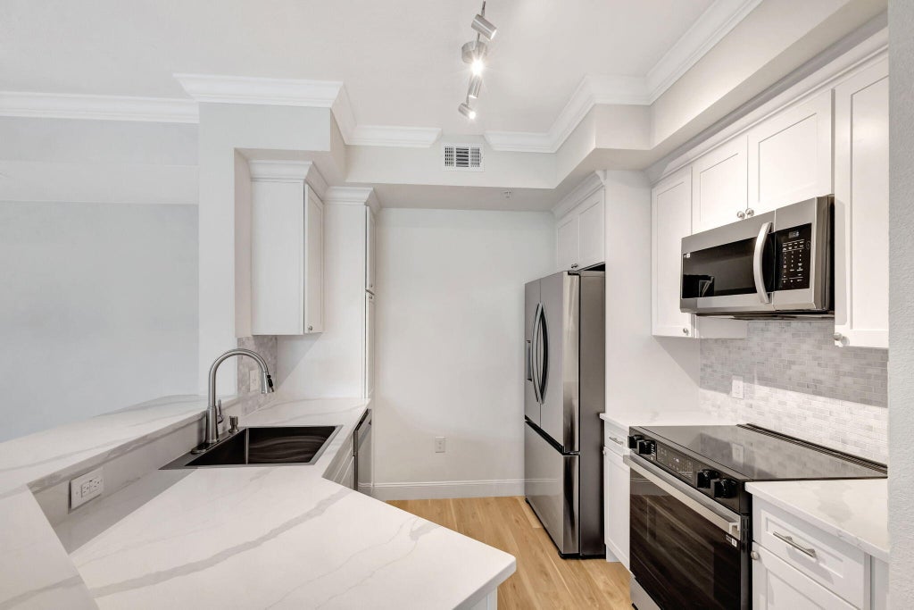 ACCEPTING BACK-UP OFFERS! Bring on the perfectionists & HGTV-influenced buyers. Everything is brand-new in this spectacular condo at Vizcaya Lakes just masterfully renovated top-to-bottom. The kitchen has brilliant white quartz countertops, a farmhouse style sink & Shaker cabinets. An elegant backsplash & upgraded overhead lighting unify the design. Stainless-steel Samsung appliances throughout, rewired all the way to the panel.The bathrooms each have brand-new vanities with LED-framed mirrors & dual sinks, white quartz countertops, new flooring, wall tiles, toilets & fixtures. The frameless glass doors in the primary en suite continue the modern motif. Premium vinyl plank flooring is consistent throughout. Dimmable lighting. Accent fan in the living room & new fans in the bedroom.