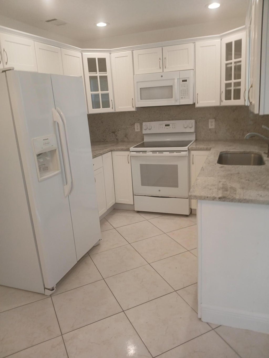Single family house, all tile floors, central air, fenced in yard, side by side fridge with icemaker, dishwasher, flat top stove, microwave above, inside laundry room with washer and dryer, water and lawn maintenance included in rent. no HOA
