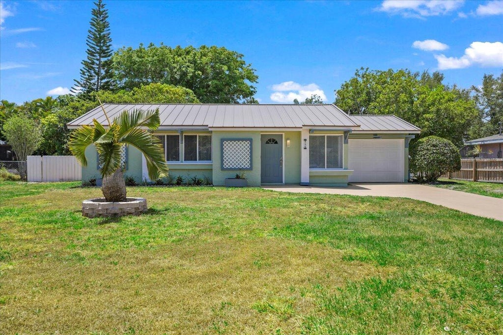 Must See to Fully Appreciate this Move-In-Ready lovely two-bedroom, two-bath, garage home. Completely renovated in 2023 and 2024. Renovations include a New Standing Seam Metal Roof, Custom Kitchen with Quartz countertops with seating, Bathrooms, Flooring, Lighting, Ceiling Fans, and Electric. Bring your pets and let them run on your fenced-in yard, which still has plenty of room for your toys. A Boat or RV can fit on the side of the property or backyard. A large shed in the backyard with electricity is perfect for additional storage or your workshop. Included with the $35 HOA dues are the Club House, Pool, Tennis - Pickle Ball courts, & a Weight Room. Shopping, Beach, and Boat Ramp are all within minutes. Enjoy Florida to the fullest. Seller to credit Buyer $3,000 towards closing costs
