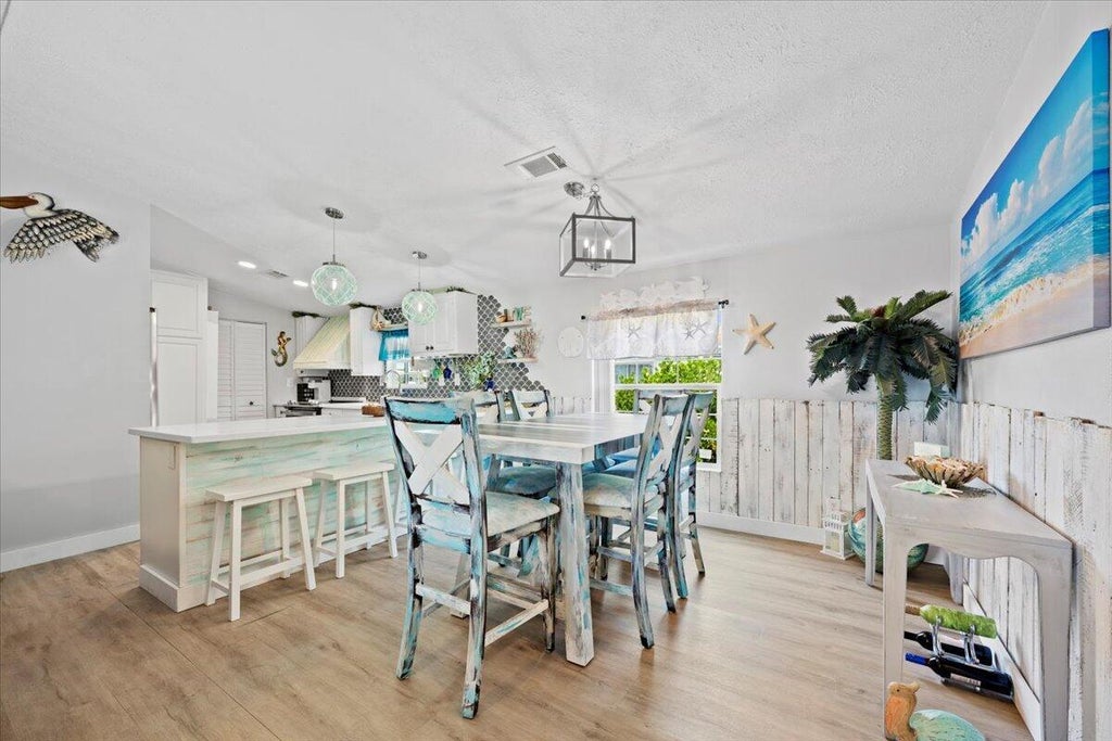 Island Vibes in Hobe Sound! Live like you're on island time in this beautifully updated 3 bedroom, 2 bath manufactured home in Hobe Sound, featuring an additional office/flex room and no HOA. Just minutes from Hobe Sound Beach, this property blends coastal charm with modern upgrades for easy Florida living. Enjoy a light and airy interior with a coastal-inspired kitchen, complete with white cabinetry, a custom wood vent hood, wine fridge, and stylish finishes. Both bathrooms have been tastefully upgraded, and the open layout offers a great flow for entertaining. The additional office space is perfect for working from home or hosting guests. Step outside to your private oasis with a screened-in patio, outdoor tiki bar, saltwater above-ground pool, and putting green. Turf grass and low
