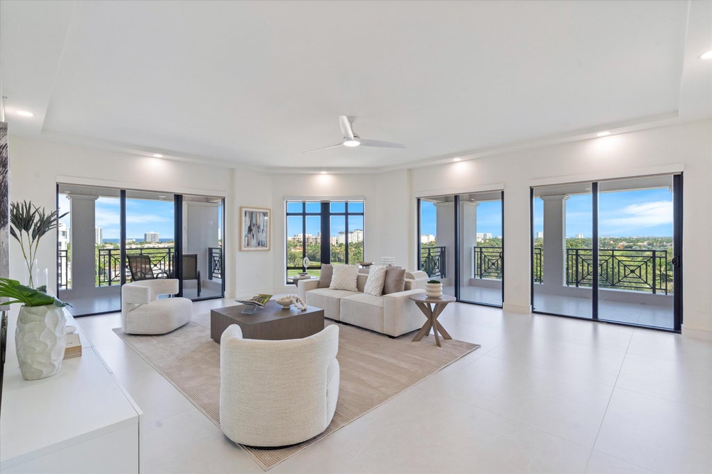 Sleek, gorgeous 3 ensuite bedrooms, 4.1 bath condo in the heart of Boca Raton now available for annual rent! This fabulously chic residence boasts a Miami and NY feel from the moment you walk in. Endless ocean to golf course views from every room in this 8th floor Southeast corner dog friendly (2 dogs up to 75lbs) home. Completely renovated, this chic, contemporary home features large format 48x48 white porcelain tile throughout, beautiful white matte cabinetry with warm wood accents, enlarged island and new appliances (oven, microwave, induction cooktop, washer and dryer). Primary suite features his and hers closets and bathrooms with shared shower. A spa-inspired ''her'' primary bath features a soaking tub & custom make-up station. High-ceilings. Motorized shades. Wet-bar