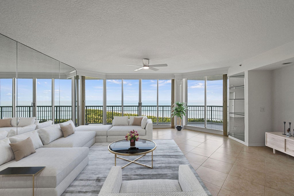 Experience oceanfront living at its finest in this 3 bed, 2 bath condo at Regency Island Dunes on Hutchinson Island. Enjoy breathtaking Atlantic views from the open-concept living, dining, and kitchen areas. The custom kitchen offers white cabinetry, stone countertops, and stainless steel appliances. A spiral staircase from the patio provides easy access to the pool--perfect for pet owners. Regency offers resort-style amenities: 24-hour manned security, oceanfront social, fitness, billiard and card rooms, heated pool, hot tub, private beach access, underground parking, and A/C storage. Residents also enjoy full membership to Island Dunes Country Club with golf, tennis, pickleball, a riverside restaurant, and marina.