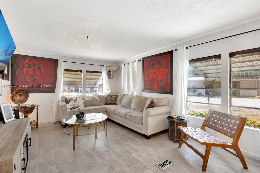 Welcome to Your Tropical Paradise! Escape to your very own slice of island-inspired retreat. This beautifully updated one-bedroom, one-bathroom home is the perfect place to unwind and soak up the Florida sunshine. Enjoy true outdoor living with three separate patio areas, one shaded with umbrellas for leisurely afternoons, one ideal for sunbathing, and another perfect for sipping a drink while taking in breathtaking sunsets or enjoy your glass enclosed patio. Completely remodeled from top to bottom in 2020, this charming home features upgraded electrical panel, a tankless water heater, new insulation, and Durarock subfloor with tile flooring. The stylish kitchen shines with brand-new wood cabinets, modern countertops, a decorative backsplash, updated plumbing, and all-new appliances.