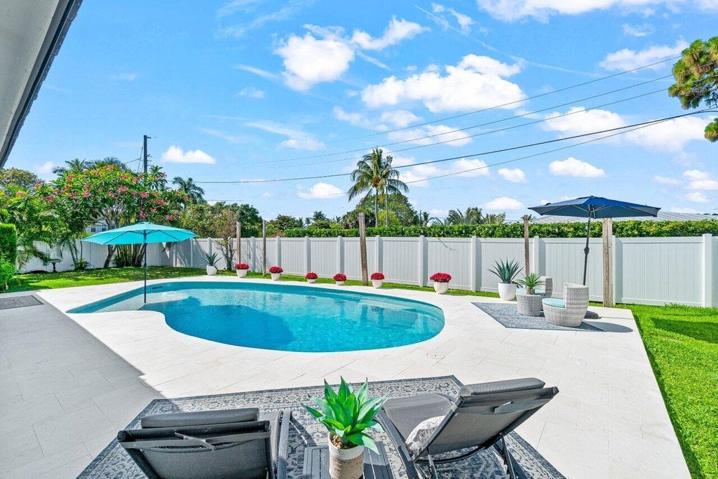 Step into luxury living at its finest in this completely renovated home featuring 3 spacious bedrooms w/ ENSUITE baths, plus powder room, PLUS OFFICE, family room, 2 car garage, BRAND NEW POOL & NEW PVC FENCING! Impeccable craftsmanship & attention to detail in this beautifully transformed home w/ high end finishes from top to bottom. Extremely bright due to natural light streaming through the many windows & light porcelain tile flows throughout. The kitchen features a massive island w/ bar seating, contemporary cabinetry & top of the line KitchenAid appliances! NEW METAL ROOF 2025 w/ transferrable warranty & NEW IMPACT WINDOWS! Extra closet space added & NEW FRONT DOOR! Gorgeous new sparkling blue pool w/ sun shelf, brand new white travertine deck & new white fencing!