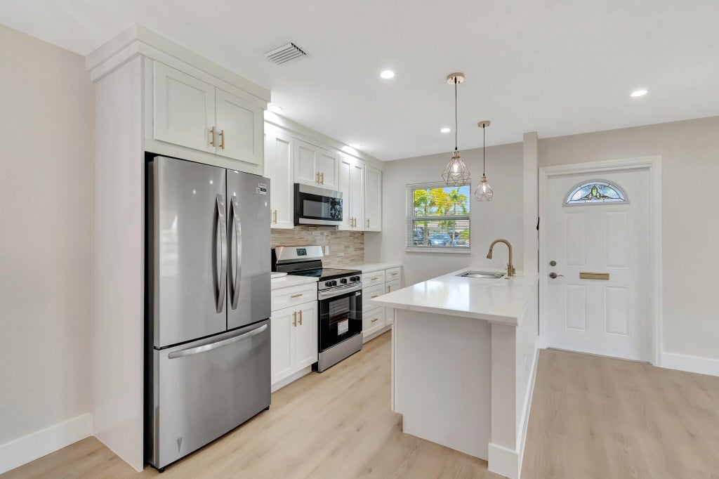 Your view is exquisitely Renovated here at High Point!! This perfectly renovated corner villa is done to absolute perfection! Two bedrooms, two Full bathrooms. Light and Bright with NEW WINDOWS! Washer and Dryer Hookup! Newer A/C, Newer Water Heater! Fully renovated new kitchen with All new top of the line appliances! Renovated to every nook and Cranny with matching colors for a unified modern comfortable look! Easy entry into all spaces! Perfect for a long term comfortable living space! A must see! Best of all! Best Deal in High point! Condo association with some of the lowest association in Delray Beach! This is an absolute Find at its Highest Point!