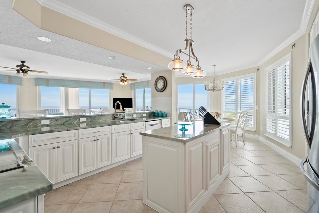 New Images coming 6/9. PRICED BELOW MARKET VALUE. Rarely available south end unit at Oceanique Oceanfront Luxury Condominiums , direct ocean front condo on North Hutchinson Island, panoramic views of the Atlantic from this 5th floor. upgraded triple pane hurricane Impact glass, large wrap around balcony to enjoy the ocean breeze, 3 bedrooms with 3.5 baths. large dining room, a Office/Den room. bright open floor plan with sliders in the living area and master bedroom, This beautiful unit many many upgrades featuring quartzite in kitchen , baths and laundry, painted cabinets. Large kitchen with stainless appliances 2022 A/C system, tankless hot water system, 9 Foot ceilings with crown moldings. Includes a one under the building parking space, a garage and storage unit.