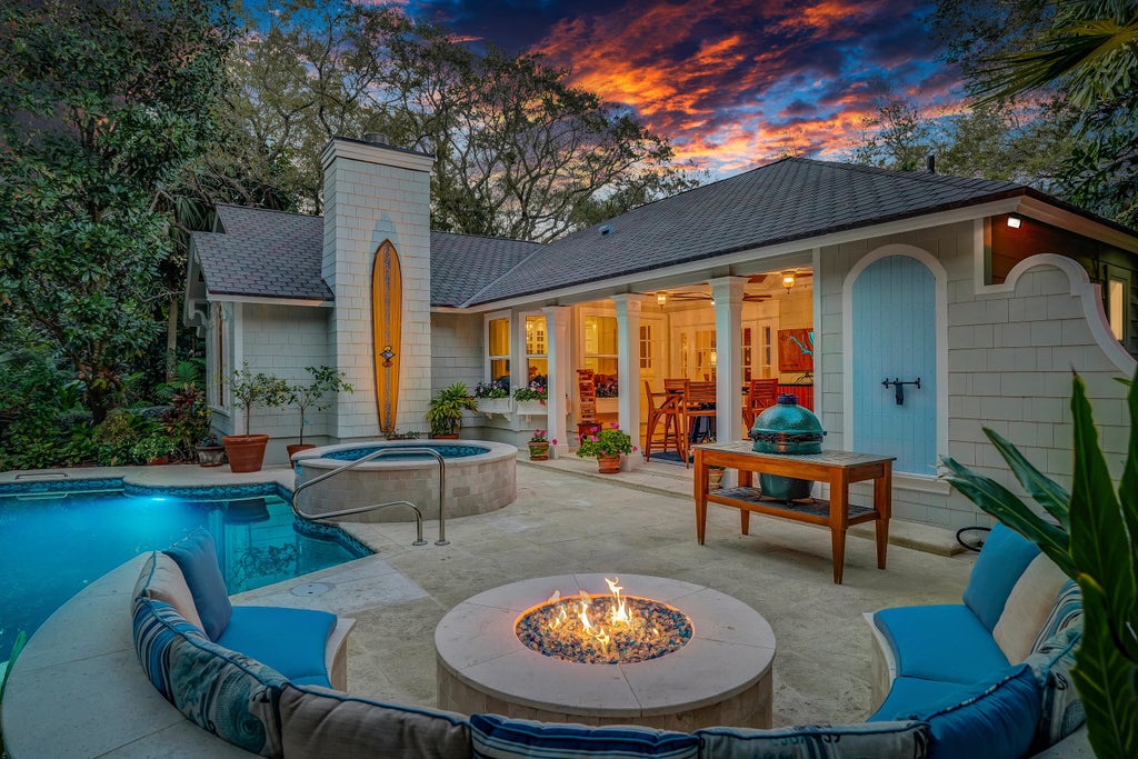 PRIVATE BOAT RAMP! 3 Bed, 2.5 Bath bespoke home w/impact glass, 14' ceilings, pool, spa & fire pit on huge .63ac lot in coveted Eagle's Nest, near Jupiter's Inlet. Marvel at the custom kitchen w/ cherry island topped w/marble, mosaic butcher block, green slate sink, pantry & Sub-Zero & Viking appliances - open to a family room w/fireplace & breakfast nook. Next, a loggia w/ coffered ceiling & teak pool bath overlooking a spa & fire pit, both seating 8, heated pool w/ swim jet & a bridge taking you deep into your preserve. Inside, a shell stone bath w/ glass shower serves 2 guest bedrooms & formal living & dining rooms. The Main Bedroom boasts: built-in w/desk, walk-in closet & wardrobe, 2x vanities, glass shower & alcove w/soaking tub. Laundry Room, Slab for Boat. SIMPLY A MUST SEE HOME!