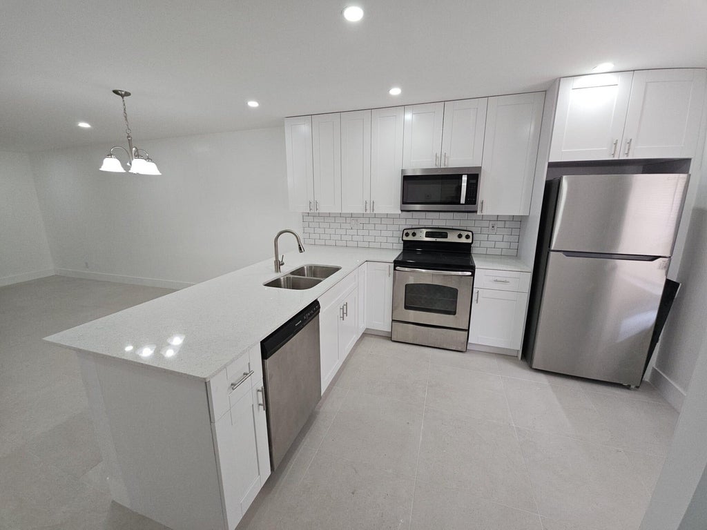 Beautiful 2 Bedroom, 2 Bathroom UnitThis stunning first-floor home features a gorgeous new kitchen with modern finishes and stainless steel appliances. Enjoy renovated bathrooms with updated fixtures and all-tile flooring throughout--no carpet! For added convenience, there's an in-unit washer and dryer. Located on the ground floor with no stairs, and water is included in the rent!