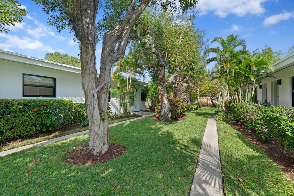 Nestled in the heart of Delray Beach, you will find this fully updated mid-century modern 2 bedroom 1 full bath home on a quiet street. Conveniently located nearby desirable Atlantic Ave, which offers many restaurants and shopping. This unit boasts an open-floor plan, new vinyl-wood flooring, new kitchen cabinets, new countertops, new everything! It also offers custom closets, window treatments, impact glass. New private washer and dryer is on-site. Get on your bikes and enjoy beach-side living. Welcome home!