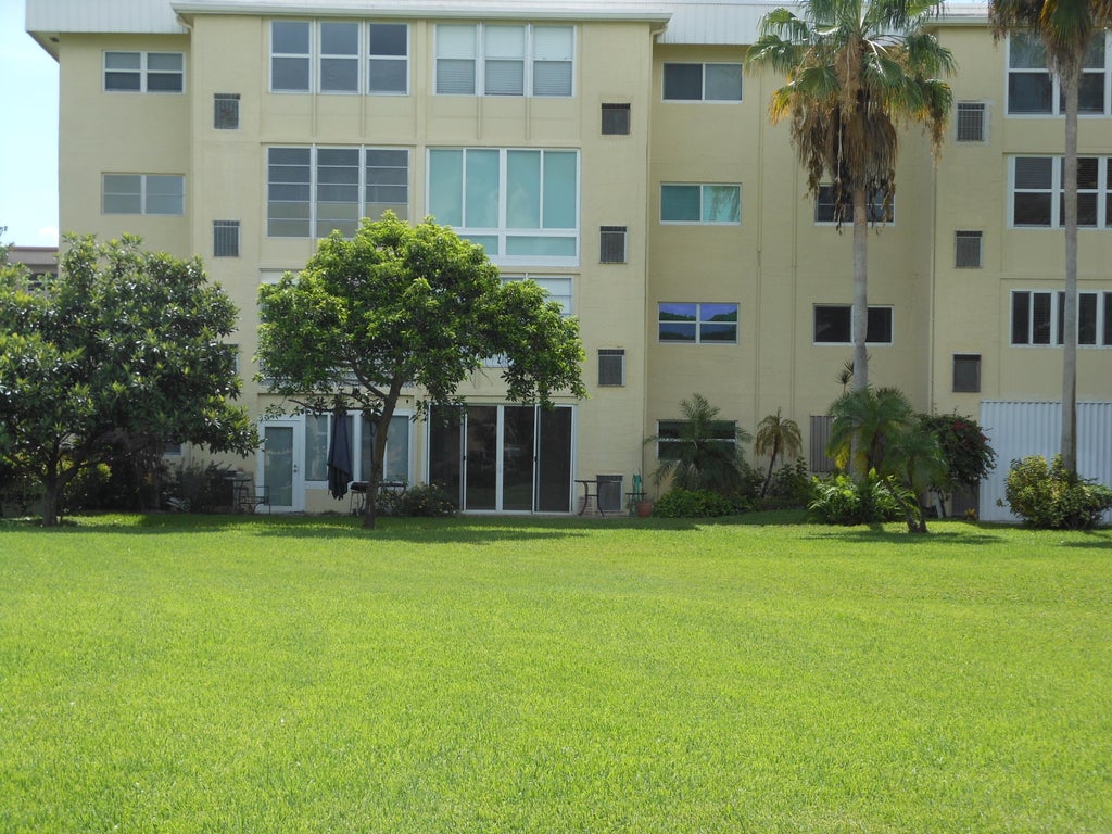 Village Royale ON THE GREEN...literally on the most amazing green open spaces with beautiful gardens. Step from your porch into Paradise. First floor unit with fabulous views. Freshly painted and ready for move-in, 1 bedroom 1.5 bathrooms condo in a 55+ active community. Community organized events , movie nights and clubs, so much to do in Clubhouse with theater, two pools, tennis courts, Bocce courts, Shuffleboard, gorgeous lawns with mature fruit trees, and sidewalks throughout. This unit is located very close to community Clubhouse and main pool, plus a short drive to shopping centers, restaurants, mall and movie theater. Retirement heaven, come join Florida living in style.