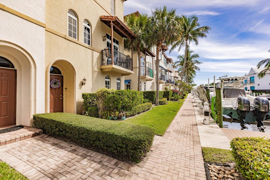 Available 9/1. Also offered seasonally at $6500 per month. Boater's paradise! Private serene townhome community on the intracoastal just minutes from Atlantic Avenue. This end unit home boasts 9' ceilings, walk-in closets with built-ins, hurricane impact windows and doors, plus an elevator to carry groceries or luggage from first floor to second or third floor. Kitchen has gorgeous granite island, large wine fridge, newer appliances with plantation shutters throughout. Downstairs has a bedroom and full bathroom for guests plus a 2 car garage. Estancia is a gated, pet-friendly community of 30 townhomes offering privacy, security and waterfront lifestyle, with pool, spa and fitness center. Protected boat slip available for long-term lease just steps from your front door