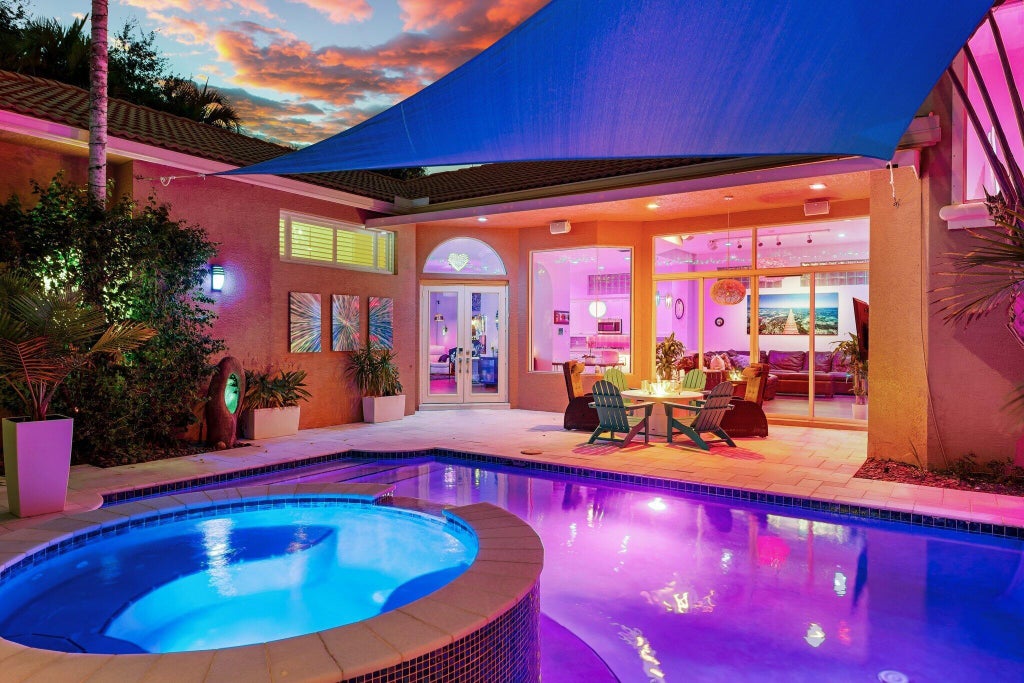 One-of-a-Kind Courtyard Pool Home in Gated Mirabella - Priced Below MarketWelcome to 191 Sedona Way--an exceptional Verona model nestled in the sought-after, guard-gated community of Mirabella at Mirasol. This beautifully upgraded courtyard home offers resort-style indoor-outdoor living with rare features and unmatched value.As the only Verona model in the community with two expansive custom walk-in closets and renovated kitchen & bathrooms, this home delivers comfort, luxury, and privacy in equal measure.Enter through a lush tropical courtyard oasis with marble pavers, gas-heated pool and spa, extended awning, and dual patios--one fully screened for year-round enjoyment.Inside, enjoy an open and airy layout with wood-look porcelain tile, stunning owner's suite featuring