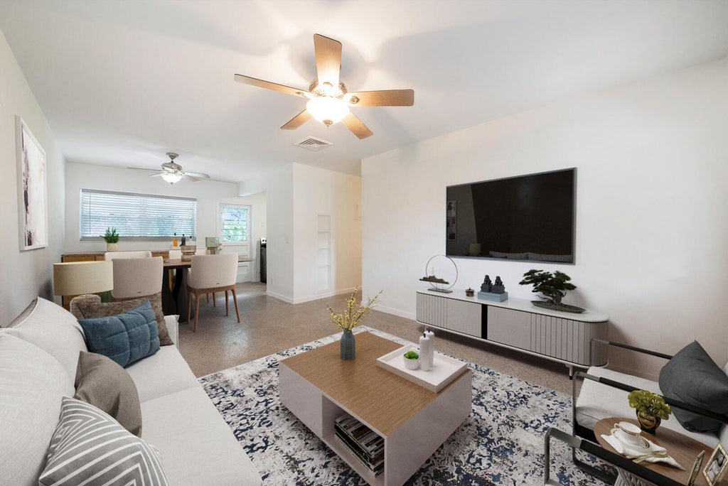 Charming 3 bedroom, 1 bath home available for rent in a non-HOA community. This bright and inviting freshly painted home features an updated kitchen with new appliances, easy-care terrazzo flooring throughout, and a spacious layout. Enjoy outdoor living in the large private yard--perfect for relaxing or entertaining. Conveniently located with no HOA restrictions. Don't miss this opportunity! Great location! Conveniently situated near Atlantic Avenue, with easy access to shopping, dining, entertainment, schools, major highways, and just minutes from the beach.