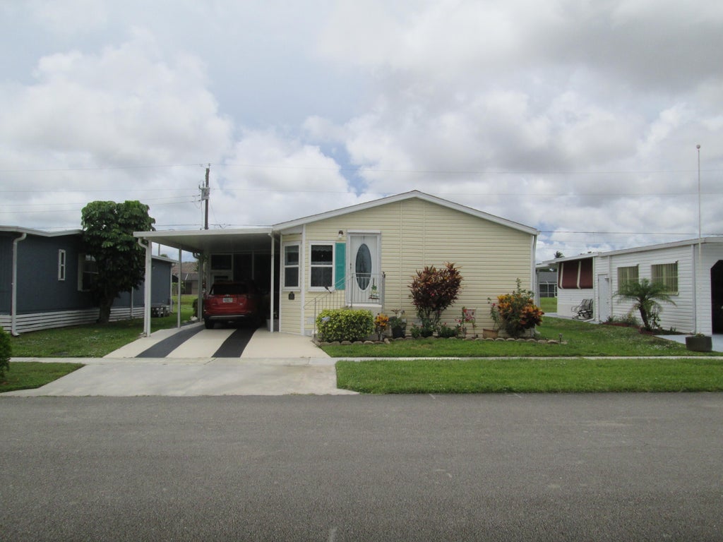 SPECTACULAR TURNKEY, 2 BEDROOMS(BOTH COULD BE MASTERS), 2 FULL BATHROOMS (MASTER IS TOTALLY UPGRADED) ALL THIS ON YOUR OWN LAND WITH A HUGE ENCLOSED FLORIDA ROOM WITH A/C. THIS HOME HAS AN OPEN FLOOR PLAN THAT IS GREAT FOR ENTERTAINING. LARGE KITCHEN WITH UPGRADED APPLIANCES WITH EAT IN KITCHEN THAT FLOWS INTO THE FORMAL DINING ROOM & FAMILY ROOM. LOTS OF STORAGE IN KITCHEN & BATHROOMS. WALK OUTSIDE TO YOUR HUGE BACKYARD RIGHT ON THE CANAL WITH LARGE PAVED PATIO WITH A LARGE STORAGE SHED. HOUSE INSIDE & OUTSIDE ARE PAINTED IN BEAUTIFUL FLORIDA COLORS. THERE IS A COVERED CARPORT FOR PARKING & MORE ROOM IN THE DRIVEWAY. THE COMMUNITY HAS A CLUBHOUSE WITH A POOL, LIBRARY, SHUFFLEBOARD & LOTS OF ACTIVITIES ALWAYS GOING ON. LOTS OF GREAT DINING & SHOPPING, CLOSE TO I-95 & THE TURNPIKE