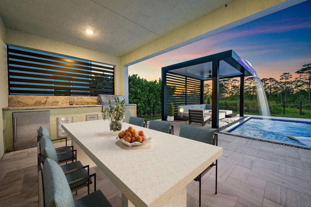 Welcome to this beautifully renovated lakefront home located in the prestigious gated community of Banyan Bay. With a spacious and light-filled interior, this elegant residence offers 2,878 square feet of refined living space, including four generously sized bedrooms, a dedicated office, and two and a half bathroomsa"perfect for both families and those who love to entertain. The freshly painted interior features new luxury vinyl flooring throughout, along with updated fans, fixtures, door hardware, and cabinet hardware. New hurricane impact sliding glass doors lead to a covered patio, seamlessly blending indoor and outdoor living.