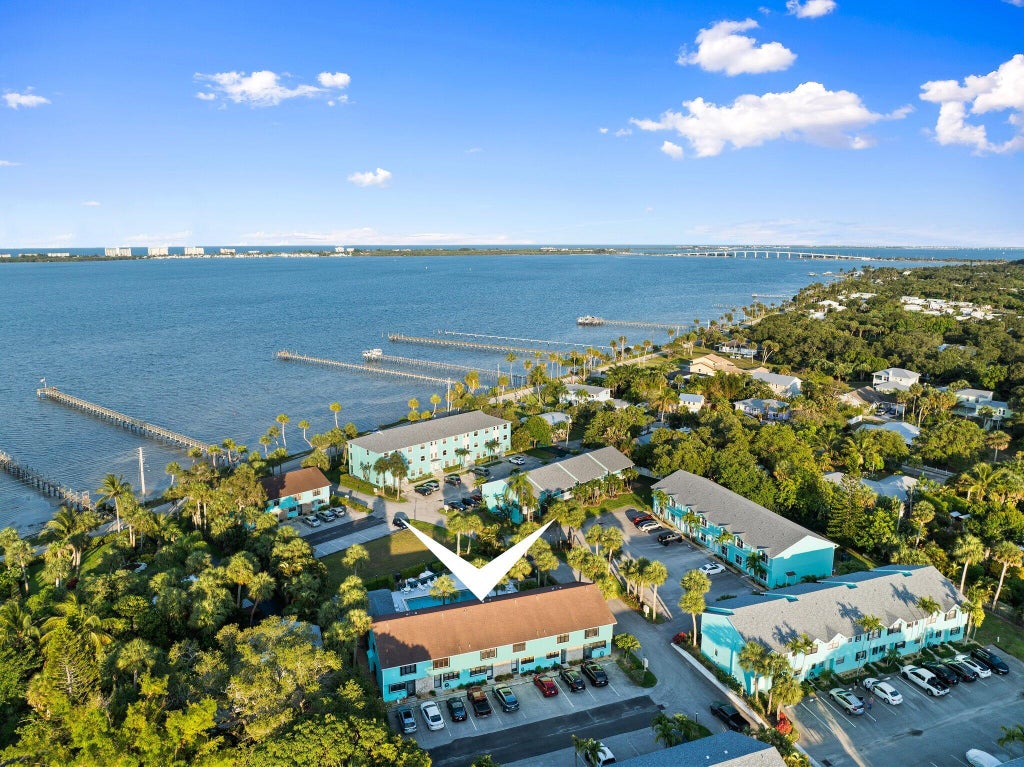 Relaxed, coastal living awaits you at this beautiful Indian River Landing townhome. Prime location near beaches and downtown Jensen Beach and just a short, scenic drive to downtown Ft. Pierce. This updated and inviting CBS townhome features 2 BR/2.5 baths, and views of the river and pool from the lanai and master bedroom. The well-maintained and updated interior gives cozy and inviting vibes- updated kitchen with Corian counters, vinyl plank flooring throughout the downstairs, new lighting, built-in bookshelves, fresh paint, under-stair storage, newer stackable washer/dryer upstairs, updated bathrooms, & plush carpeting upstairs. Enjoy sunrises or evening cocktails from the community beach and fishing pier, offering breathtaking views of the Indian River Lagoon!