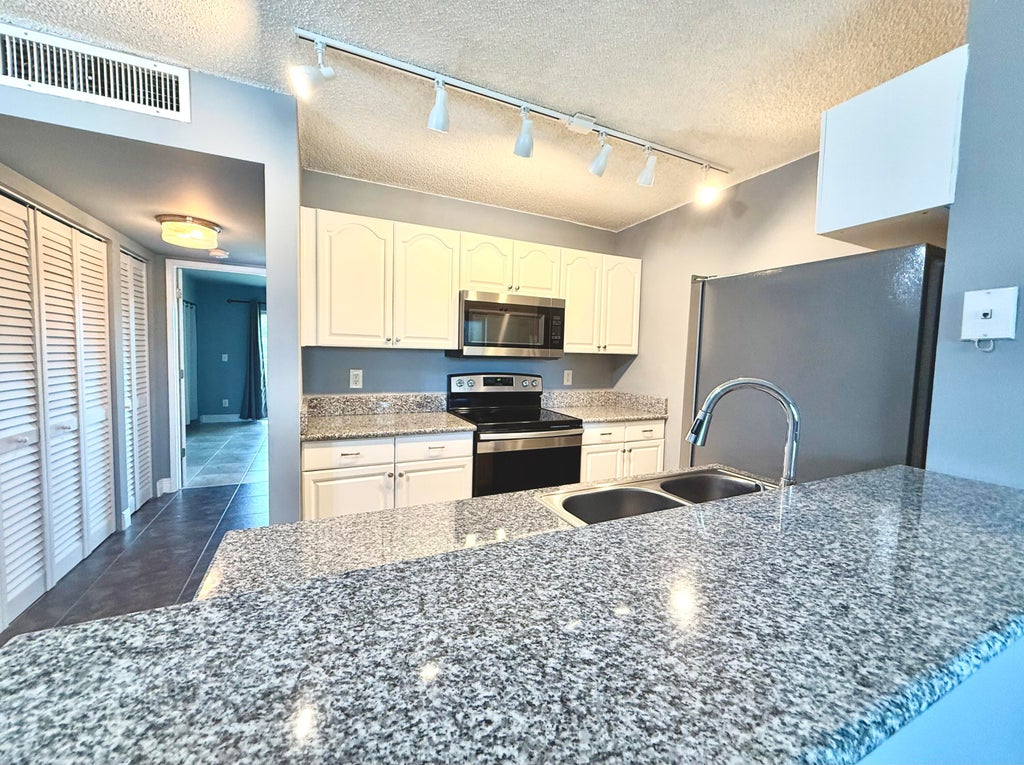 Stunning updated and move-in ready condo in the heart of Boynton Beach. This 1-bedroom, 1-bath condo features a brand new A/C, new appliances, and fresh paint throughout. The kitchen stands out with beautiful white cabinetry and granite countertops, offering both style and function. You'll find sleek tile flooring, a spacious layout, and an in-unit washer and dryer for added convenience. The bedroom includes generous closet space and plenty of natural light.Located in a gated community, residents enjoy access to resort-style amenities including two pools, tennis courts, a fitness center, and a clubhouse--all just minutes from the beach, shopping, and dining.