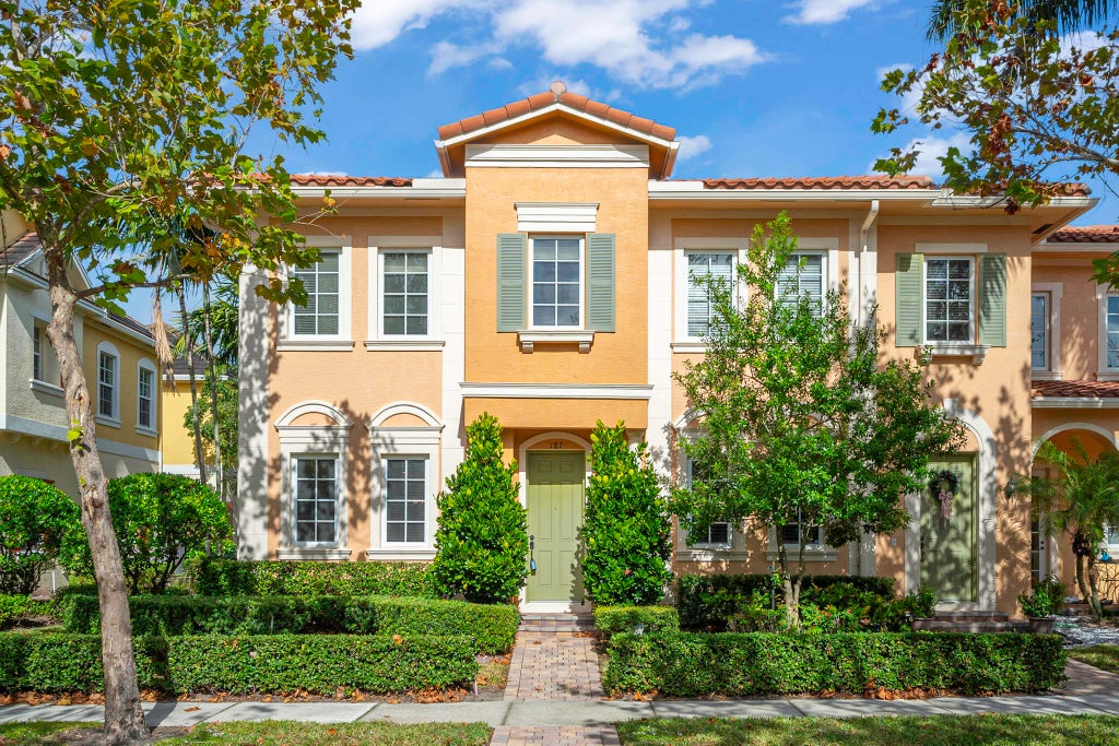Beautiful end unit townhouse in Canterbury Place, ABACOA! Open, light & bright w/volume ceilings & impact glass thru-out. 3 bedrooms, 2.5 baths in the main house PLUS BONUS private guest house/studio/office space w/ full bath & kitchenette. Main House has huge eat-in kitchen, wood cabinetry, stainless steel appliances, pantry & granite countertops. Large great room opens to a private courtyard and 2 car-garage. 2nd floor features a large primary suite w/custom walk-in closet, spa bath w/double vanity, soaking tub & separate stall shower. 2 addit'l oversized bedrooms on the 2nd fl w/full bath & laundry. 2 new waterheaters-2023. A/C units-2018/2019. Perfectly located across from community amenities. Great proximity to major highways, beaches, shopping and restaurants & A-Rated schools
