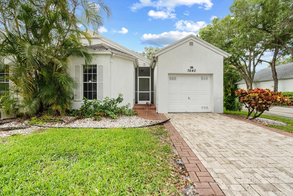 Beautiful 3/2 in exclusive gated community of Fox Hollow. This villa is in pristine condition and ready to impress! Featuring a brand-new roof, elegant wooden floors throughout, and a modern kitchen with stainless steel appliances and a stunning backsplash. Enjoy the screened-in patio with roll-up hurricane shutters for added peace of mind for entertainment. The spacious master suite includes a luxurious bathroom with a separate shower and a large soaking tub. Designed with a split floor plan, the home offers vaulted ceilings, ample closet space, generously sized bedrooms, and is fully wired for smart home capabilities.