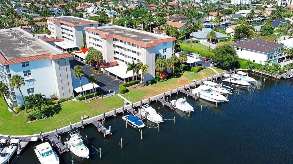 LOCATION! LOCATION East Delray Beach! Priced to sell. Great opportunity to buy this condo for sale as is and renovate it to your own tastes at your own pace and needs. 1,200 sq.ft total with enclosed balcony, 2 bedrooms, 2 baths, washer and dryer hookup, perfect for year round living or as a seasonal gateway in a resort lifestyle community with marina and intracoastal views! Each unit has its own private storage on the first floor, one covered parking space and plenty of guest parking. This building also has a spacious bike room on the first floor, new roof just completed. Dockage for boats 20'-45' is only $19/ft/yearly. HOA fees include basic cable, water and sewer, grounds maintenance, building insurance and amenities.