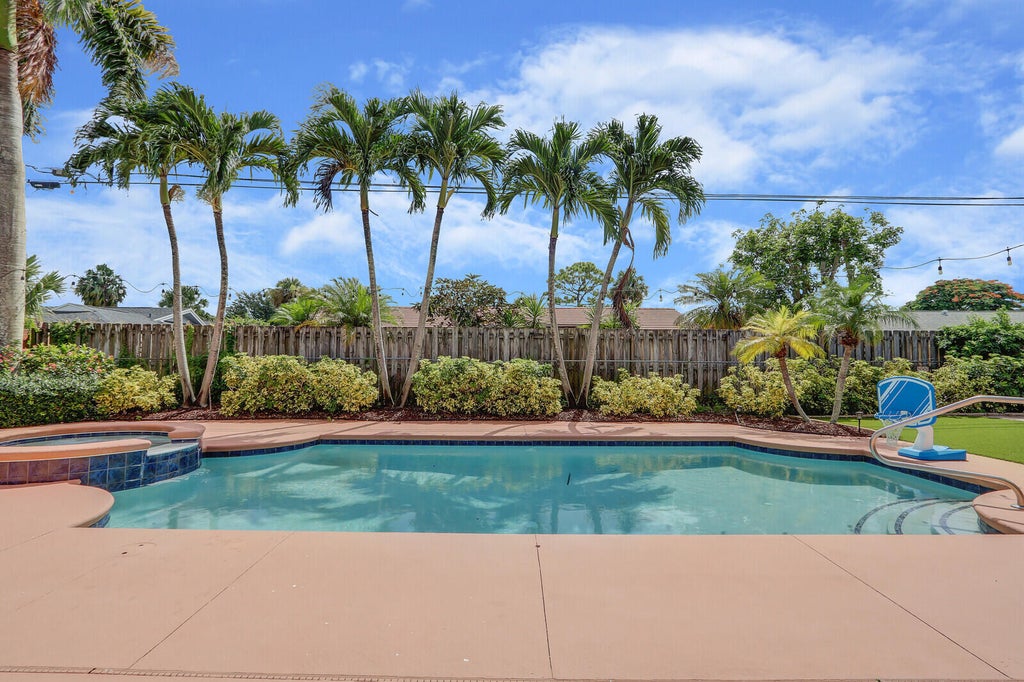 Welcome to 10186 Daphne Avenue, a beautifully maintained 3-bedroom, 2-bathroom home in a desirable, no-HOA neighborhood of Palm Beach Gardens. Located near top-rated schools, shopping, dining, and beaches.This move-in-ready property features updated bathrooms, a dedicated laundry room, and a thoughtful layout that blends defined living spaces with open flow. Enjoy a private saltwater pool and hot tub in a fully fenced backyard that provides both privacy and space for entertaining. A spacious covered patio with ceiling fans and a bar ledge extends your outdoor living. The home includes a whole-house water filtration system, is tastefully updated, landscaped, and filled with natural light. Tenant occupied through August 31. Showings begin August 1. Advance scheduling encouraged.