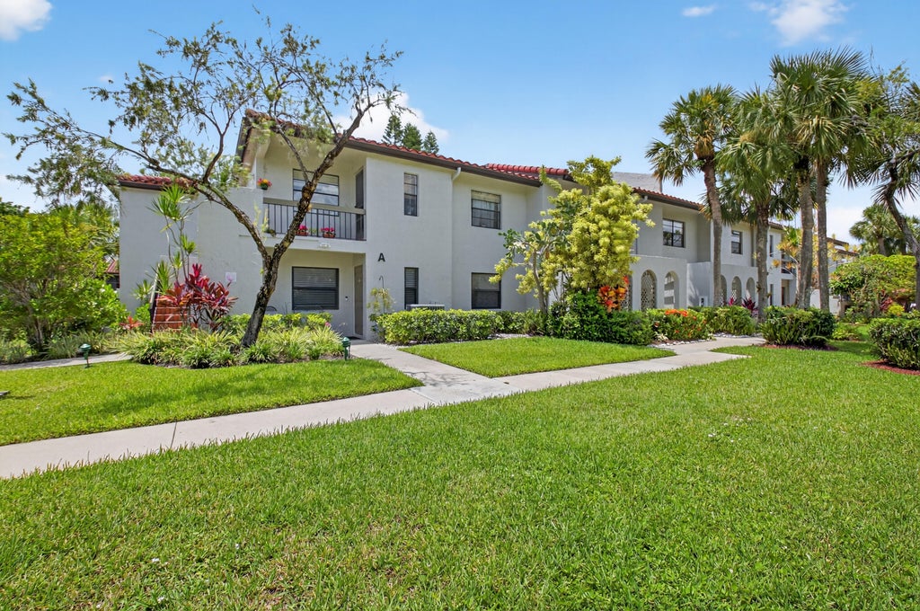 A picture says 1000 words. Elegantly renovated end unit with impact glass throughout. Updated kitchen, baths, woodwork, and move-in ready. This bright 1st floor condo, with ideal exposure and view, is ready for you to enjoy. Super quiet location within the community, yet close to all shopping and dining needs. Membership in Boca Lago Country Club is NOT mandatory.