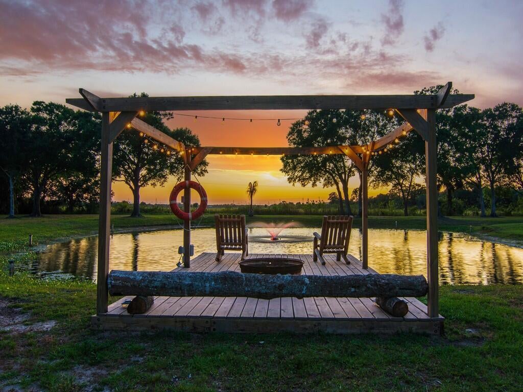 Idyllic estate sprawled over 4.75 ac w/voluntary HOA. Shaded front porch gives off quiescent vibes and large screened back porch with outdoor kitchen provides for excellent entertaining area and viewing of romantic sunsets. Brand new resort-like salt water heated pool w/ spa and full automation overlooks fish stocked pond. Hurricane rated windows, vaulted ceilings, high grade finishes and spacious room. Each bedroom is en-suite. Master quarters offer two large walk-in closets, separate large tub and shower, double sinks and WC. Plenty of closet space throughout. Huge pole barn and fire pit.