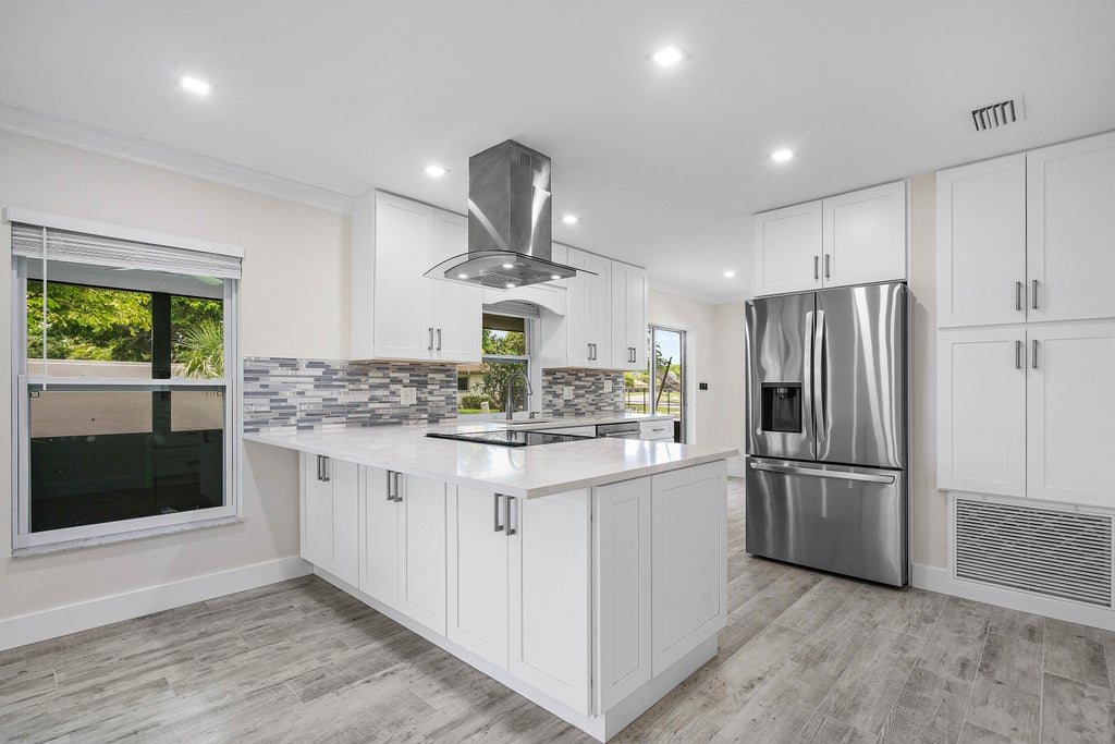 Newly renovated home on large lot features full impact glass white shakes cabinets new appliances and more