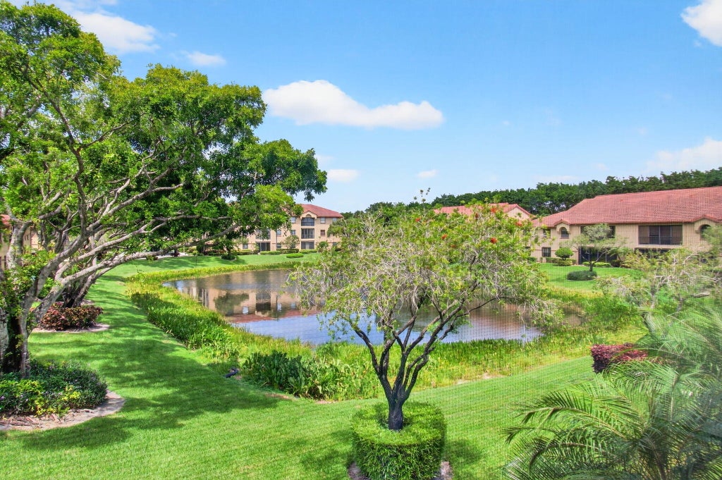 Beautiful renovated two bedroom plus den with two bathroom condo. This Grandi model condo provides you with the option to walk up the stairs or ride up in your private elevator. Light and bright condo with a fantastic view of the serene lake. The modern style of this condo is not to be missed. The updated eat in kitchen features white cabinets, quartz countertops, glass tile backsplash, stainless steel appliances and large pantry. Stunning master and guest bathrooms feature the same sleek modern flair with gorgeous tile flooring, glass shower enclosures and floating vanities and quartz counter tops. Platina is an active community with an updated clubhouse for you to take advantage of the many social activities, gym, cafe, pool, tennis, pickleball and billiard room.