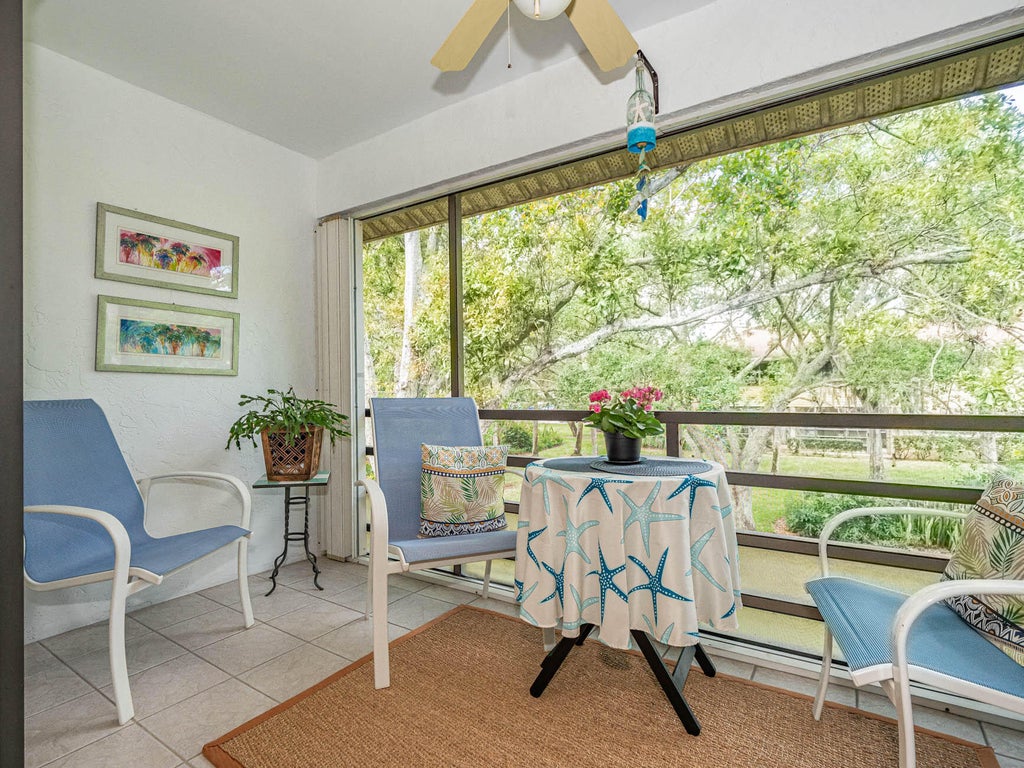 Absolutely gorgeous, 2nd floor, furnished annual rental. Oak Park Terrace is a 55+ community minutes to the beach, shops, and restaurants. Enjoy this spacious, completely renovated condo with amazing, enclosed porch and great breezes! Large master bedroom with walk in and full bath. Kitchen has newer stainless-steel appliances. Complex has pool and tennis. Laundry on floor is coin-operated. Room sizes approximate.
