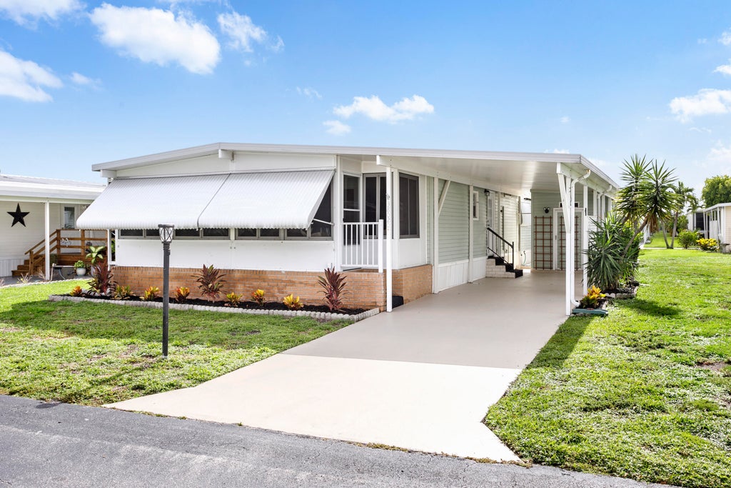 Your Own Slice of Paradise. Welcome to this beautifully updated 2-bedroom, 2-bathroom home located in a highly desirable gated community. The kitchen boasts white shaker-style cabinetry, sleek black accents, a designer backsplash, quartz countertops, and brand-new stainless steel appliances. You'll find ample storage with a spacious pantry, built-in buffet, and abundant cabinetry. The open-concept layout features a large kitchen island that flows seamlessly into the living area, perfect for entertaining. Enjoy additional living space in the glass-enclosed Florida room, complete with tile flooring and a new ceiling fan. The primary bedroom offers a walk-in closet, updated ceiling fan, and a stylish barn door leading to the en-suite bathroom, which includes a step-in shower and new vanity