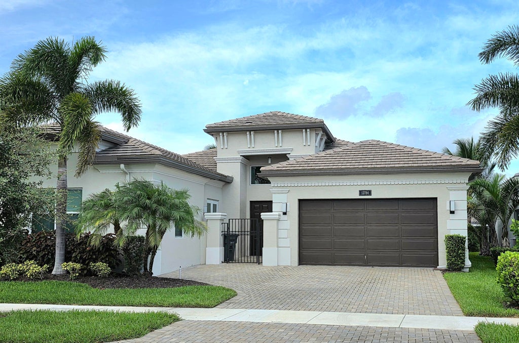 Welcome to this beautifully maintained, lakefront home located in the highly sought-after Valencia Bay, a premier 55+ community offering a luxurious and active lifestyle. This elegant 3-bedroom, 2.5-bath residence with an additional multi-use flex room and 2-car garage spans 2,827 sq. ft. of thoughtfully designed living space. From the moment you enter, you'll be greeted by an open and airy layout with expansive lake views, impact glass windows throughout. The heart of the home is a gourmet kitchen that will impress any chef, featuring a center island, stunning quartz countertops, custom cream-colored cabinetry, herringbone tile backsplash, a double oven, and a cozy breakfast area. A formal dining room and spacious living area