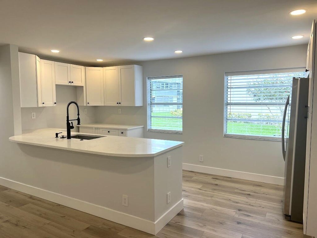 Are you ready to embrace South Florida's finest 55+ lifestyle? Welcome to Kings Point--a vibrant, man-gated community where comfort, luxury, and excitement combine to create the perfect home for active adults. This stunning, first-floor corner apartment has been exquisitely remodeled from top to bottom, offering a contemporary, open-concept layout filled with sunlight. The living space features elegant custom flooring, crisp white shaker cabinets, dazzling imported quartz countertops, and a chef's kitchen fully opened up for effortless entertaining. Both bathrooms are masterpieces of modern design, boasting premium vanities, designer tiles, sleek glass showers, and upscale fixture Beyond your new home, you'll discover an array of resort-style amenities reserved for Kings Point residents.