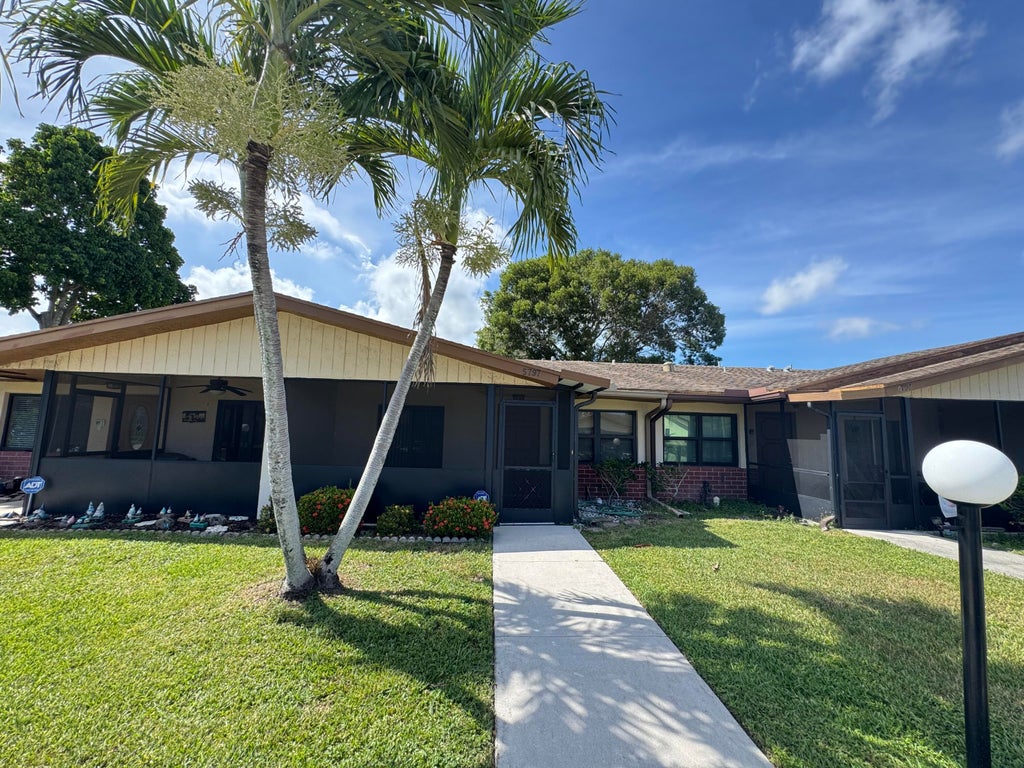 Beautiful 2 Bedroom, 2 Bath Villa in Sought-After Delray Villas with a Prime Location & Exceptional Amenities! This beautifully updated villa offers 2 spacious bedrooms both with walk in closets and 2 modern bathrooms. Step into a remodeled white kitchen featuring sleek quartz countertops, perfect for cooking and entertaining. The villa boasts luxury vinyl flooring throughout, combining style and durability. Both bathrooms have been tastefully upgraded for a clean, contemporary look. Enjoy Florida living with two outdoor living spaces with a screened front patio and a private rear patio, ideal for morning coffee or relaxing evenings. Plus, a full-size washer and dryer in-unit. Located just a short walk to the pool, you'll love the ease of access to resort-style amenities. Internet and