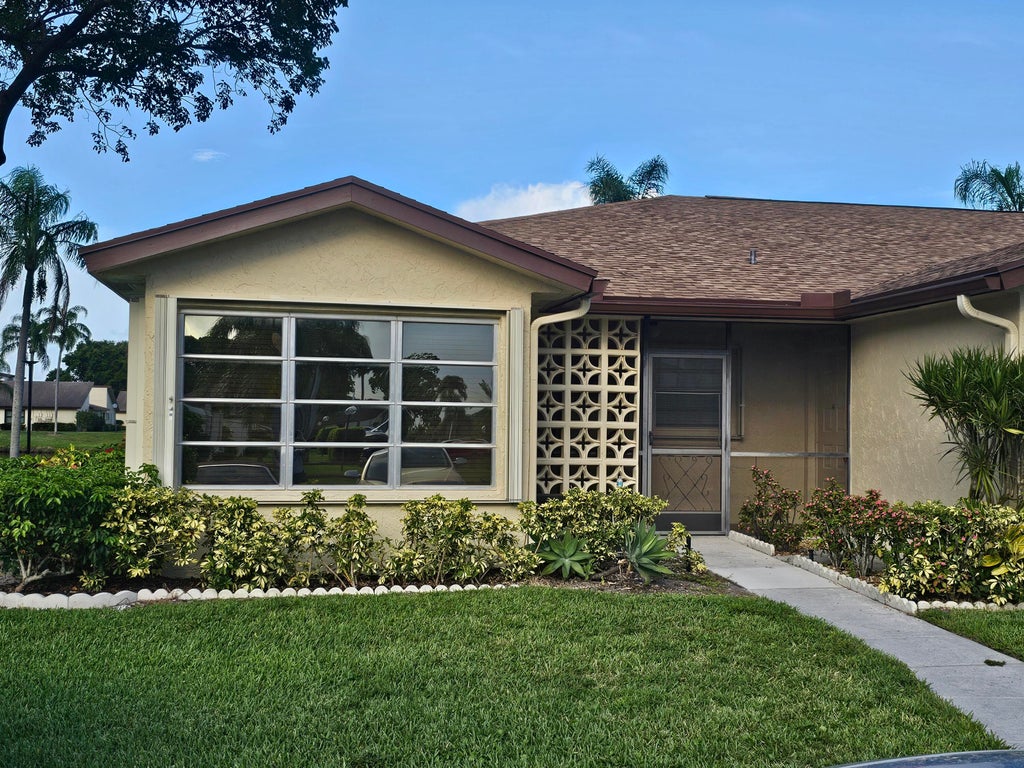 Age 55 plus community well located just north of Atlantic Ave. Completely remodeled spacious and bright 2/2 corner villa on the lake. Open kitchen w/black marbled granite counters. 42 wood 'soft close' cabinets w/pantry, double stainless steel sink, garbage disposal and newer appliances. Living room has fan w/ ceiling light.Sony 55' wall mounted TV w sound bars/bluetooth capabilities and bass speaker, Great BR has ceiling fan w/light.TV wall mount, Master BR has ceiling fans/light,Sony 50' wall mounted TV all closets have melamine wood shelving. Master BR has shower/tub combo/vent and heat lamp, Guest has a 'no step in' walk in shower/vent and heat lamp, Neutral wood like ceramic flooring throughout, stack washer/dryer inside. Alarm system, accordion shutters & blinds on every window.