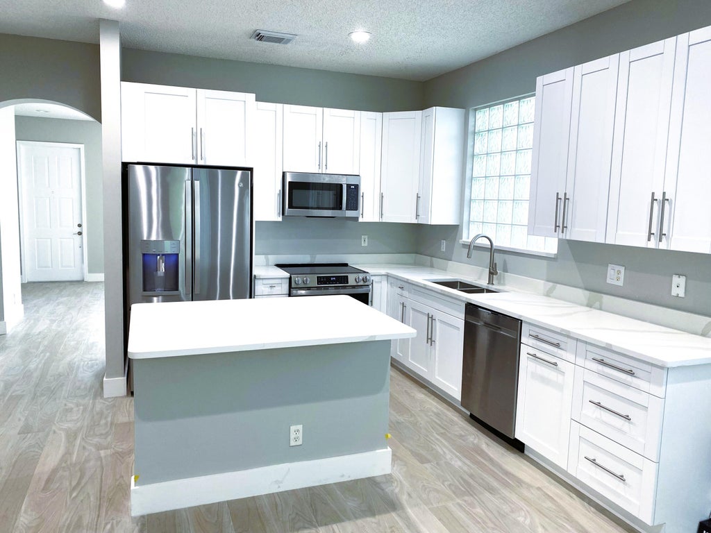 Wonderful GATED Community! NEWLY RENOVATED! Open & Spacious, High Ceilings, Formal Living & Dining Rooms, Brand New White Shaker Kitchen, New Quartz counters, New Appliances and Kitchen Island, that opens to a LARGE Family Room. Porcelain & Ceramic Tiled Floors thruought, (No Carpet) & Fully Fenced Backyard & Lawn Care is Included. Enjoy Friendly All Ages Community w/ Clubhouse, Pool & Fitness, Kids Playground! Need FICO 700+, Non-Smokers, No Pets/Animals.