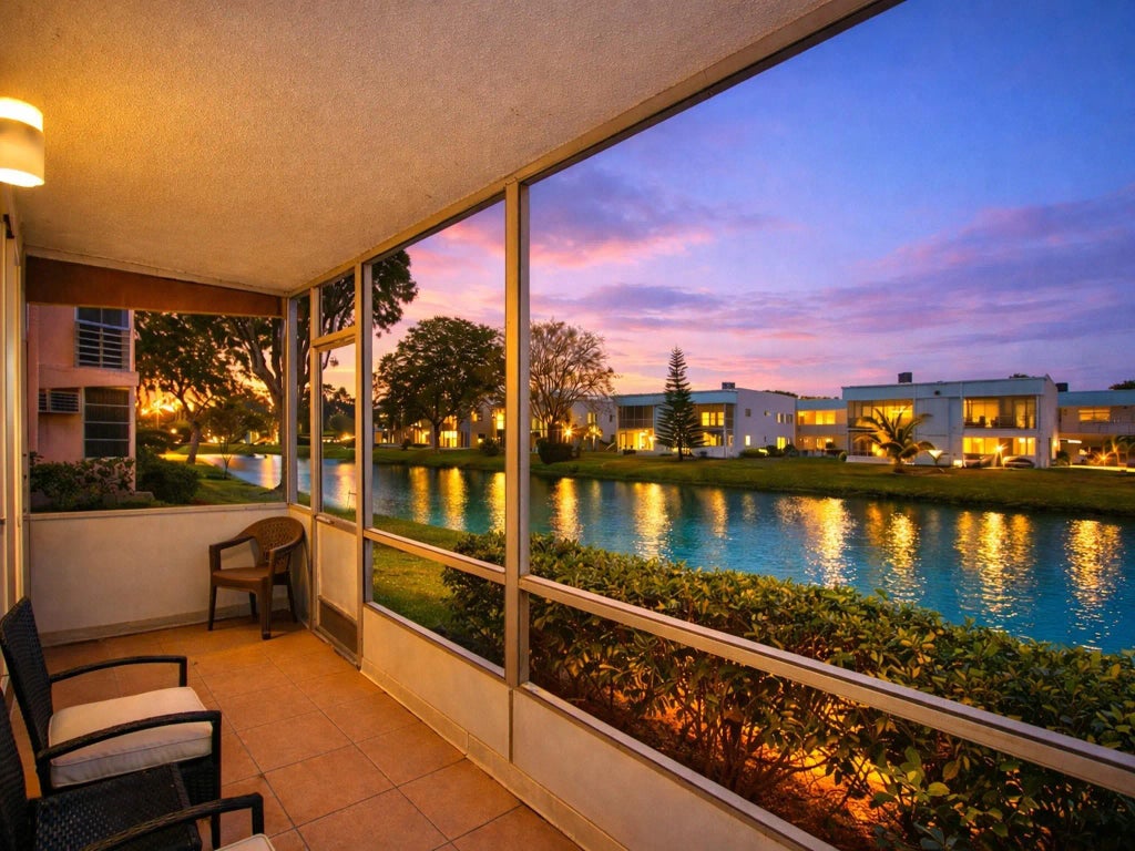 1st floor corner waterfront condo in Kings Point! Screened patio, in-unit washer & dryer, abundant windows, parking steps away, resort-style 55+ community.Enjoy bright living w/ extra windows throughout. Sliders from both bedrooms open to a spacious screened patio overlooking the peaceful waterway—the perfect place to relax and enjoy South Florida breezes and sunsets.The kitchen features a hi-top counter ideal for casual dining or morning coffee. An in-unit washer/dryer adds everyday convenience, and parking is located just steps from your front door.Kings Point offers outstanding 55+ amenities including clubhouses, fitness centers, pools, theater, courtesy transportation, guard-gated security and an active social lifestyle. Maintenance includes many amenities for easy living.
