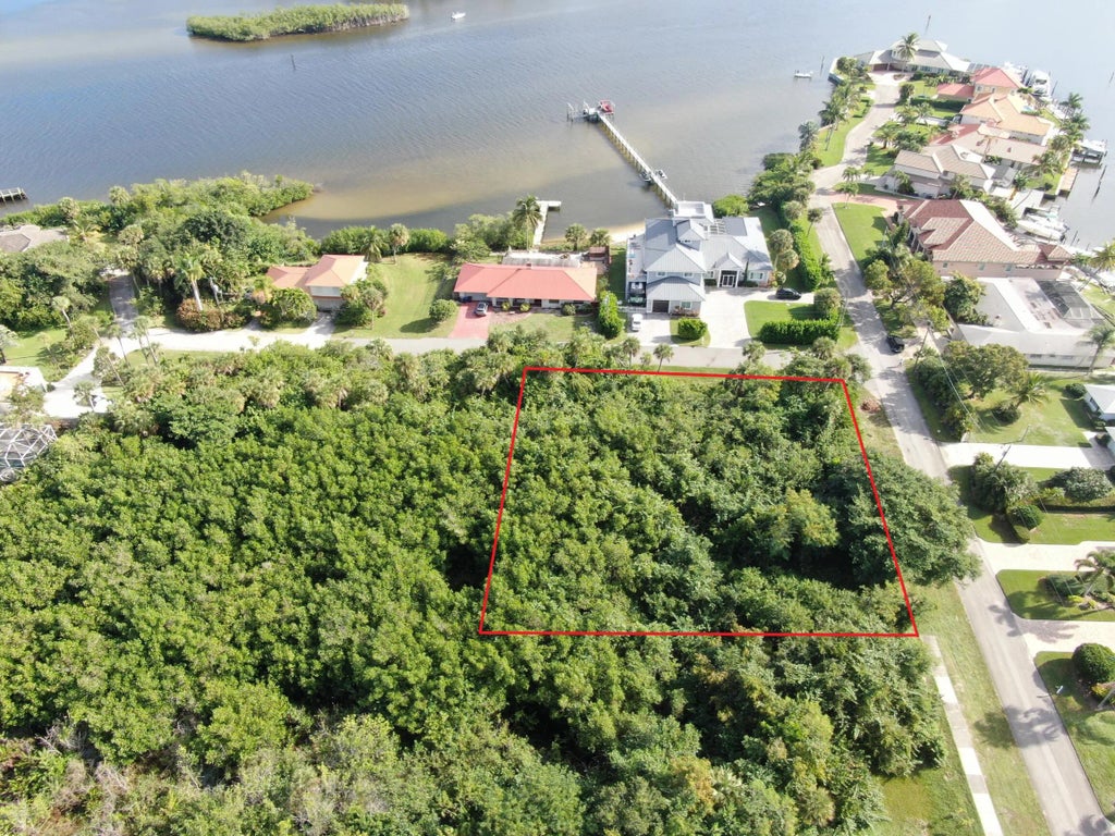 Panoramic water views await! Build your custom two or three story dream home on this beautiful corner lot in the highly desirable neighborhood of Rocky Point. Situated across the street from the intracoastal on a very quiet and peaceful dead-end street with almost zero traffic, you'll be minutes away from public boat ramps, shopping, I-95, and some of the best schools in Florida! You can use the approved existing approximately 4,300 sq ft building pad or work with your builder to fill and expand. Building Application requires a wetland waiver. There is No HOA. Don't miss the opportunity to own one of the last buildable lots with water views in Rocky Point!