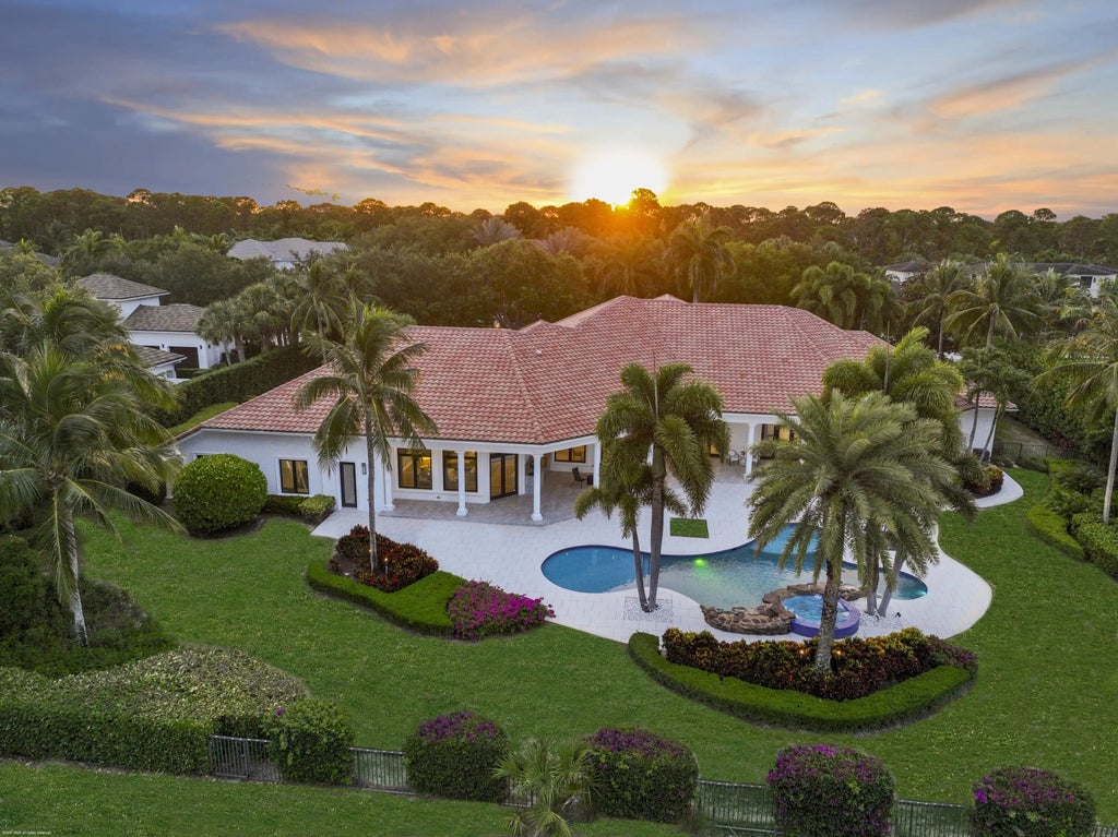 Experience the pinnacle of luxury living in this magnificent estate home nestled within one of Palm Beach Gardens' most exclusive golf communities- Old Palm Golf Club. Perfectly positioned on a premium lot overlooking the manicured fairways, this grand residence offers sweeping golf course views, refined architectural details, and resort-style amenities. Boasting over 8,200 square feet of elegant living space, this home features 5 spacious bedrooms, 8 spa-inspired bathrooms, and a gourmet chef's kitchen with top-of-the-line appliances, custom cabinetry, and an oversized island ideal for entertaining. Soaring ceilings, designer finishes, and expansive windows flood the home with natural light and enhance its open, airy ambiance. The luxurious primary suite is a true retreat, offering panoramic golf course views, a private sitting area, custom walk-in closets, and 2 spa-style ensuite bathrooms. Outdoors, enjoy Florida living at its finest with a sprawling lanai, summer kitchen, and a custom pool with a sun shelf, all framed by lush tropical landscaping and unobstructed views of the course. Residents of Old Palm enjoy access to world-class amenities including championship golf, a state-of-the-art fitness center, fine and casual dining, as well as a vibrant social calendar. Just minutes from upscale shopping, fine dining, and pristine beaches, this estate presents a rare opportunity to live in luxury and style. Schedule your private showing today and experience Palm Beach Gardens' most exclusive address.