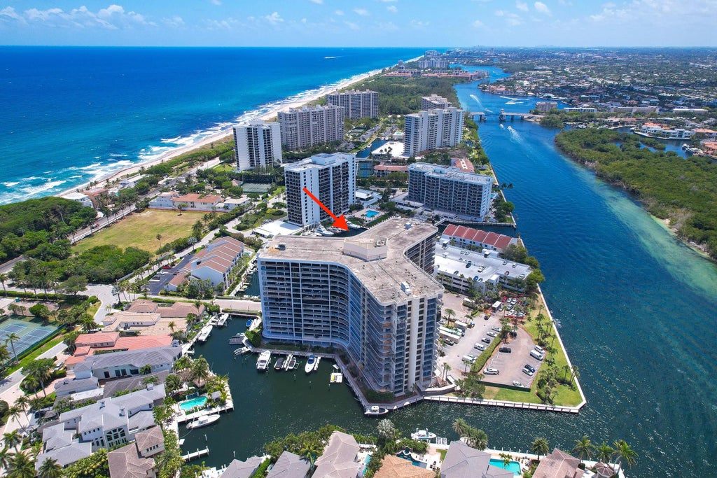This well-appointed three-bedroom, southeast corner condo offers over 2,000 square feet of bright, airy living space in an exclusive Highland Beach community along scenic A1A. Enjoy stunning views of the ocean, marina, and pool, along with direct access to a private oceanfront beach club. The thoughtfully designed open floor plan seamlessly connects the expansive living room, dining area, and kitchen, creating an ideal setting for entertaining or everyday relaxation. Floor-to-ceiling impact windows fill the home with natural light and open to a wraparound balcony that showcases the surrounding coastal scenery. The gourmet kitchen is equipped with an oversized island, abundant cupboard space, wall oven and microwave, a built-in serve counter, and both a formal dining area and eat-in breakfast nookperfect for casual meals or elegant gatherings. The spacious primary suite features a custom walk-in closet, a makeup vanity, and a luxurious bathroom with floor-to-ceiling marble tile, dual sinks with extended counter space, dual shower heads, a built-in seat, and a frameless oversized shower. Additional highlights include a newer A/C, a double-door entry, inlaid marble flooring, full-size washer and dryer, and a hotel-style lobby that welcomes you home with sophistication. Residents of this prestigious Boca Highland enclave enjoy resort-style amenities including a 24-hour concierge, state-of-the-art fitness center, tennis courts, and a secure, gated community setting along the Intracoastal. All current assessments paid by seller.