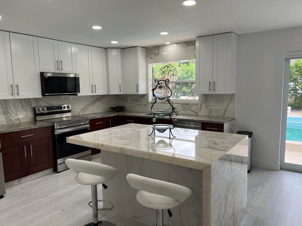 Beautifully renovated property with new flooring, all brand new appliances, quartz kitchen island and two fully remodeled bathrooms. Brand new A/C unit. Great location - 5 min walking distance to Trader Joe's at Delray Place. 1 mile from the beach. Large fenced backyard and pool shared with two other units. 3 unit building.