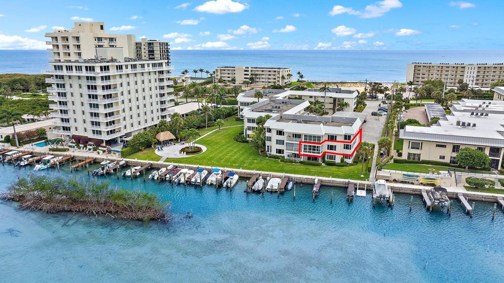 Discover luxurious waterfront living in this fully updated 2/2 corner condo at 325 Beach Rd in Jupiter. Boasting breathtaking panoramic Intracoastal views, perfect for stunning sunrises and boat watching. Meticulously renovated with a modern coastal aesthetic and flooded with natural light. Offered furnished or unfurnished. Enjoy the ultimate Florida lifestyle with the ocean just across the street and easy access to pristine beaches, dining, and shopping. Experience serene waterfront living with incredible water views and boating convenience, all while being ideally located on Jupiter Island near everything!