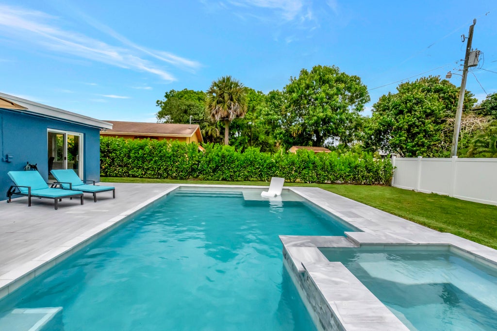 AVAILABLE ALL OF APRIL AND MOST DAYS IN NOVEMBER, DECEMBER AND JANUARY. This beautiful pool home with hot tub has everything you need! Fully furnished and turnkey. No association approval, so quick move in. Home is minutes from the downtown Delray Beach where you can go to restaurants, bars, stores, antique shops and green markets on famous Atlantic Ave. Enjoy the refreshing beach which is about 5-minute drive from home. Open concept, fully remodeled home with brand new heated salt system pool and hot tub. Fully fenced in and private yard! Home has 3 bedrooms (2 queen beds and 1 Sleep Number Adjustable Split King bed)! Both bathrooms have walk in showers. SUPER PET FRIENDLY! Great for relocators, work trips or working remotely. Owner pays water, internet, lawn and pool. SEASONAL