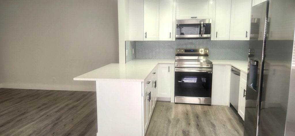 READY TO MOVE INTO...Fabulous first floor corner unit completely and beautifully renovated. Open white kitchen wilh large island. Top of the line Stainless appliances. Beautiful wood looking laminated floors throughout except for tile floors in bathrooms. Exquisite bathrooms with tile and marble and walk in shower. Full size high end washer and dryer. Relaxing screened in patio/porch. This is a fabulous social community with huge clubhouse, cafe, fitness center, indoor and outdoor pools. Pickle ball and Tennis Courts. A professional theater with terrific and low cost shows. Lots to do and lots of clubs. Minimum Credit Score is 650 as per Association.